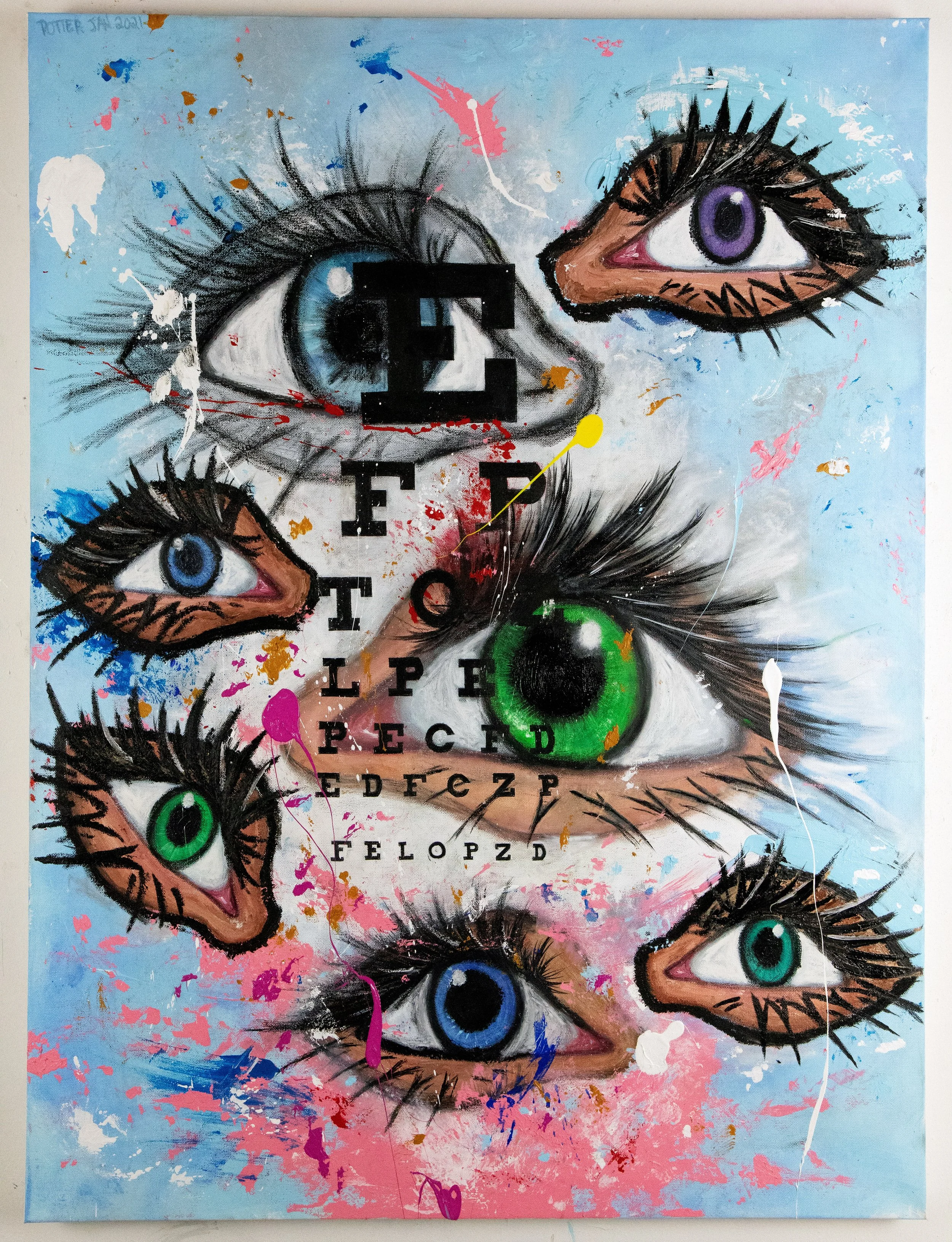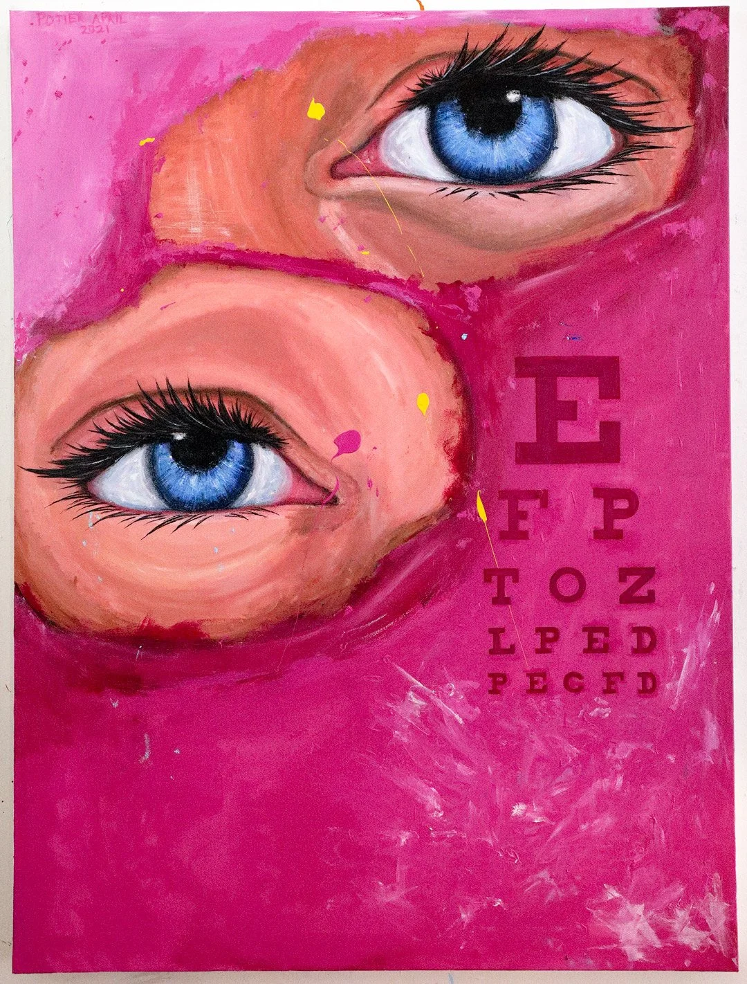 October 2021. Acrylic, graphite, colored pencil, and ink on canvas, 30” x 24”