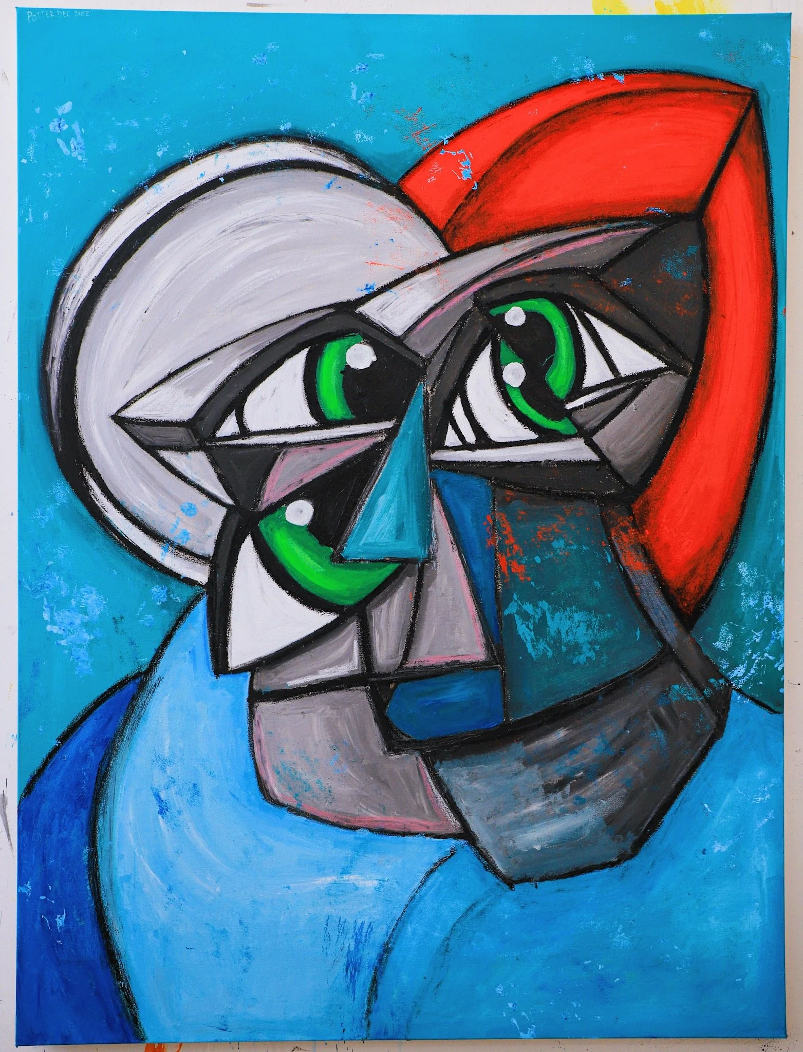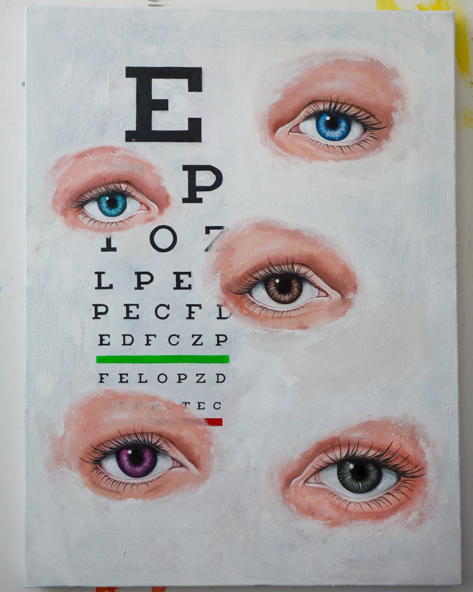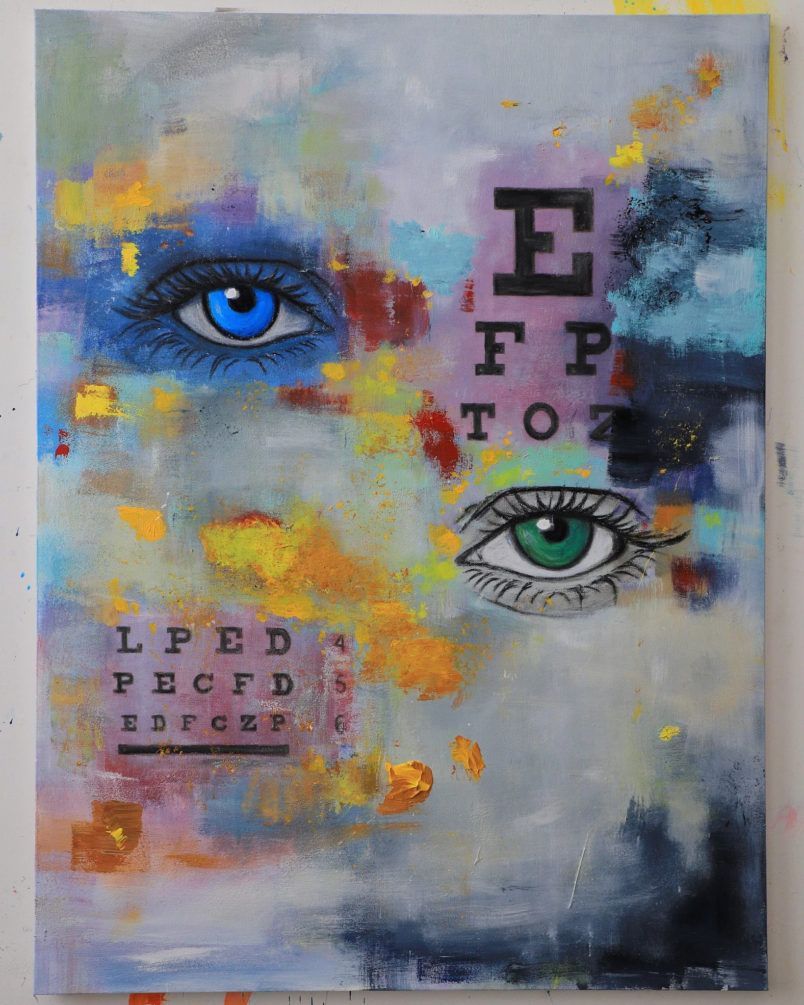 February 2022. Acrylic, graphite, colored pencil, and ink on canvas, 30” x 24”