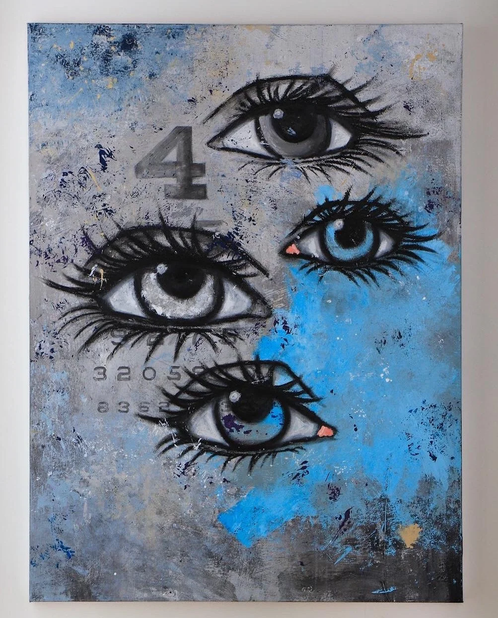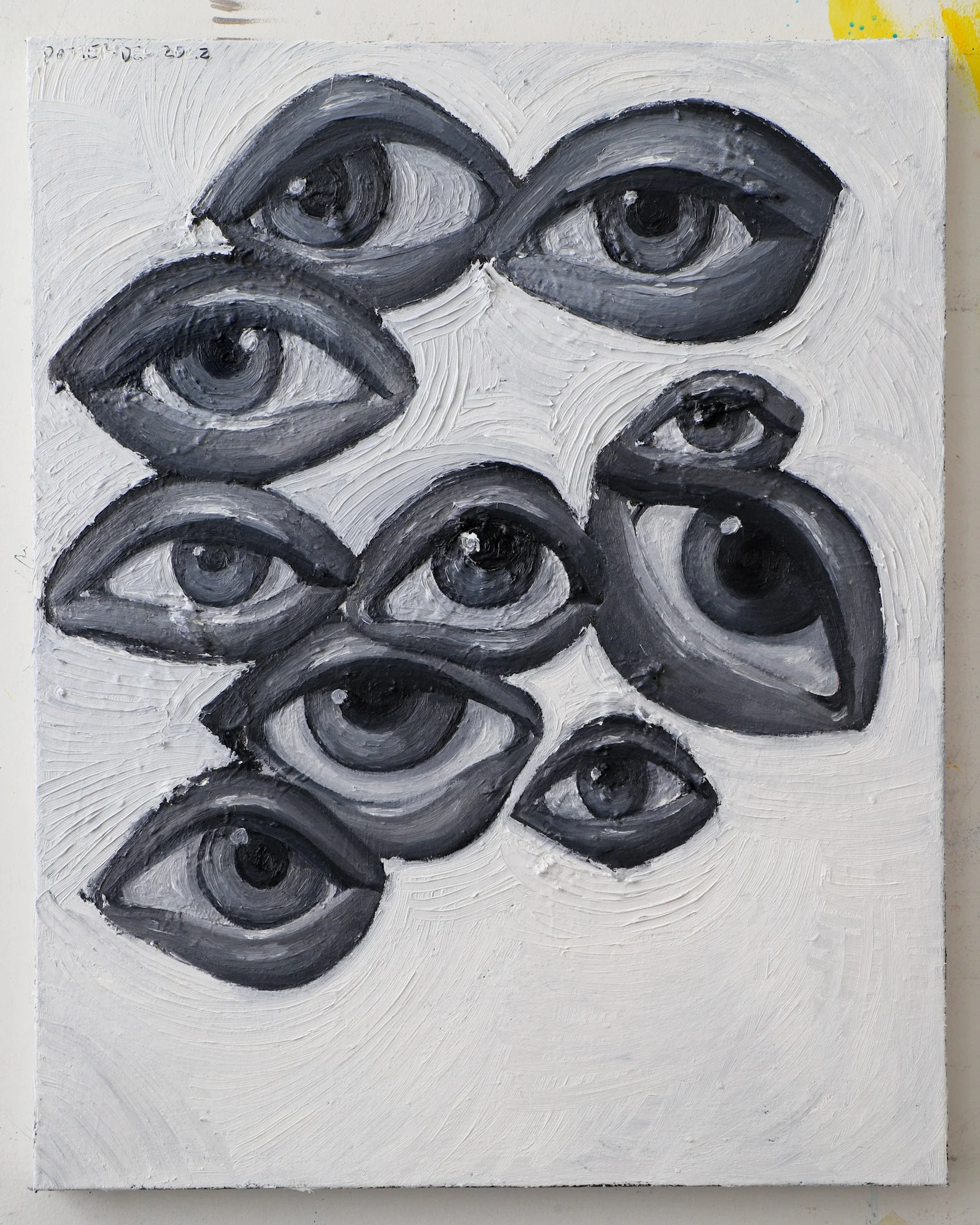 October 2022. Acrylic, graphite, oil pastel, and molding paste on canvas, 30” x 24”