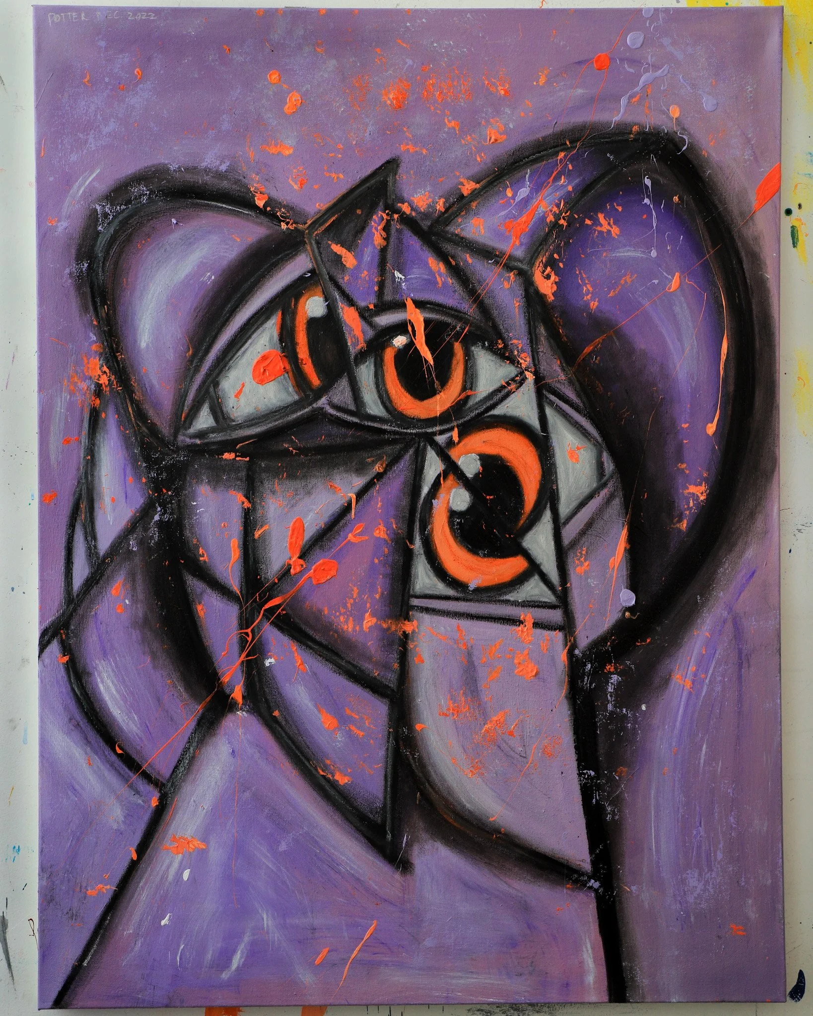 October 2022. Acrylic, graphite, oil pastel, and molding paste on canvas, 48” x 36”