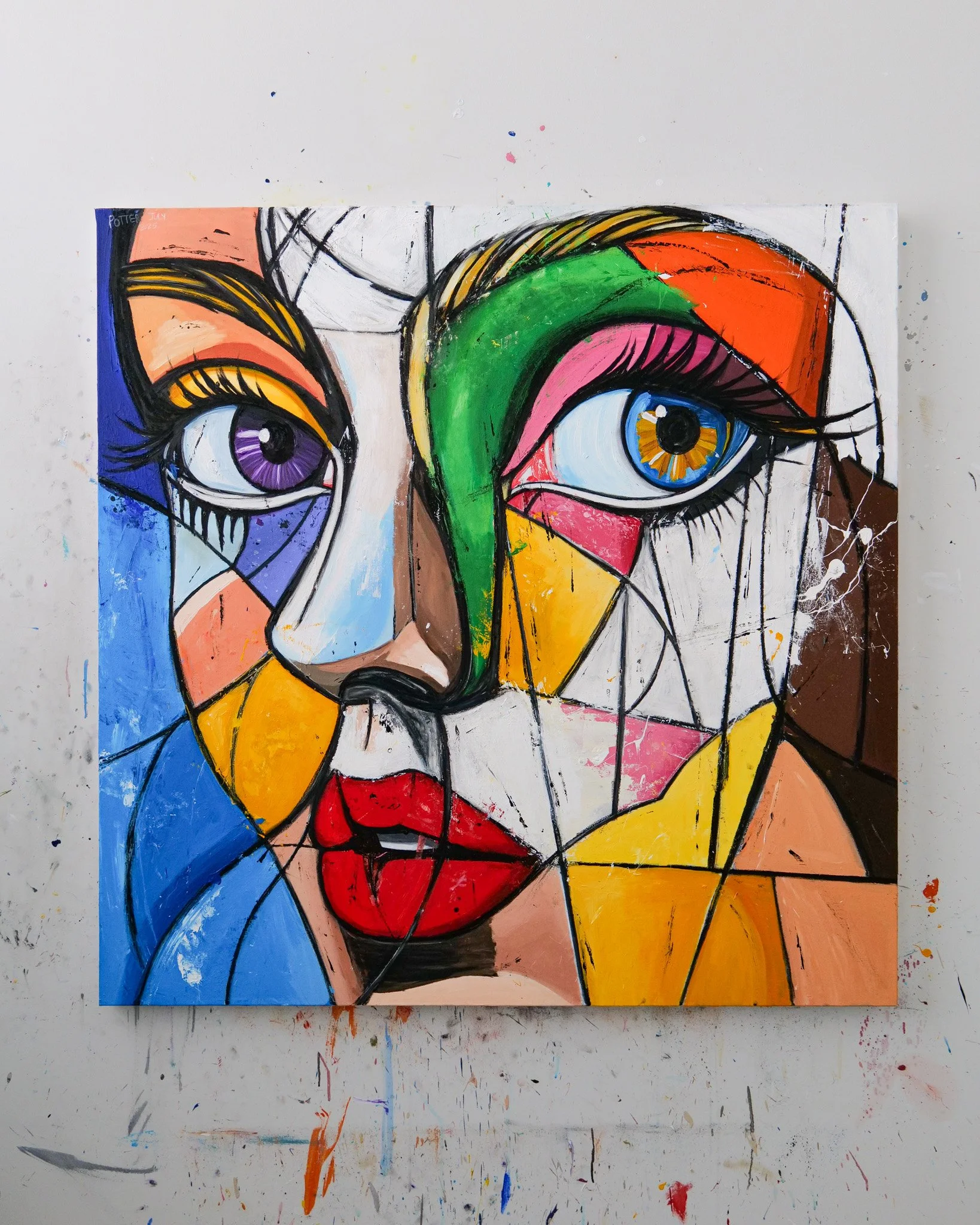 January 2025. Acrylic, oil stick, and pastel on Canvas, 48” x 48”